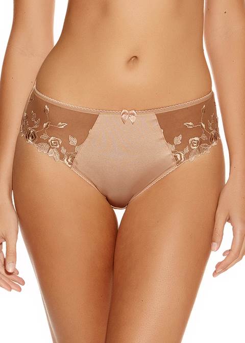 Think of Fantasie and you instantly think of Belle. This much loved collection has been a continuous best seller and it’s not difficult to see why it remains as popular as ever. The Belle collection uses a soft sheen handle fabric and beautiful semi-sheer rose embroidery along the top cups for a feminine touch. This matching brief is available from a S to a 2XL.